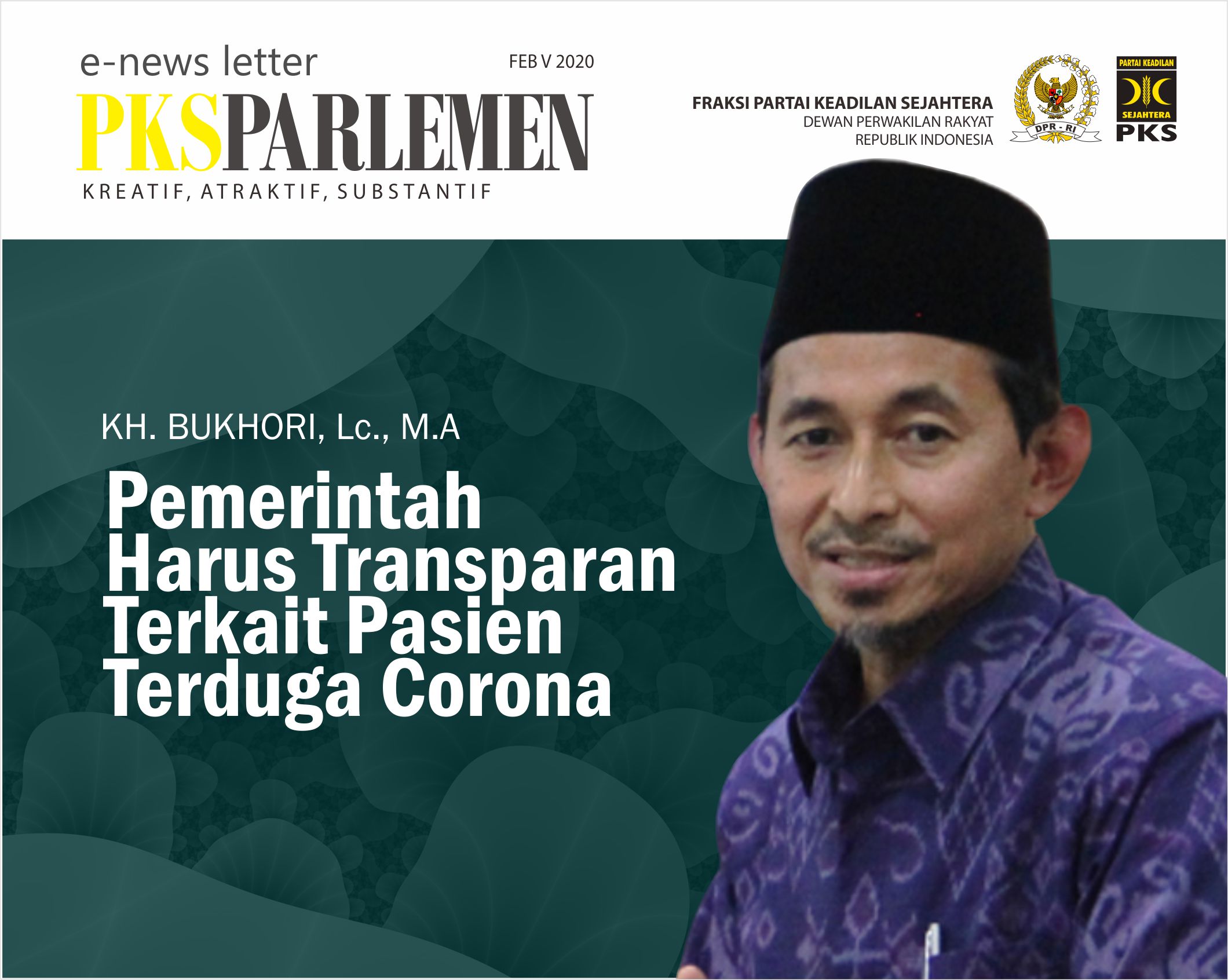 Alhamdulillah e-newsletter Fraksi PKS DPR RI edisi V Februari 2020 telah terbit. Di dalamnya terdapat pandangan dan positioning PKS di Parlemen.