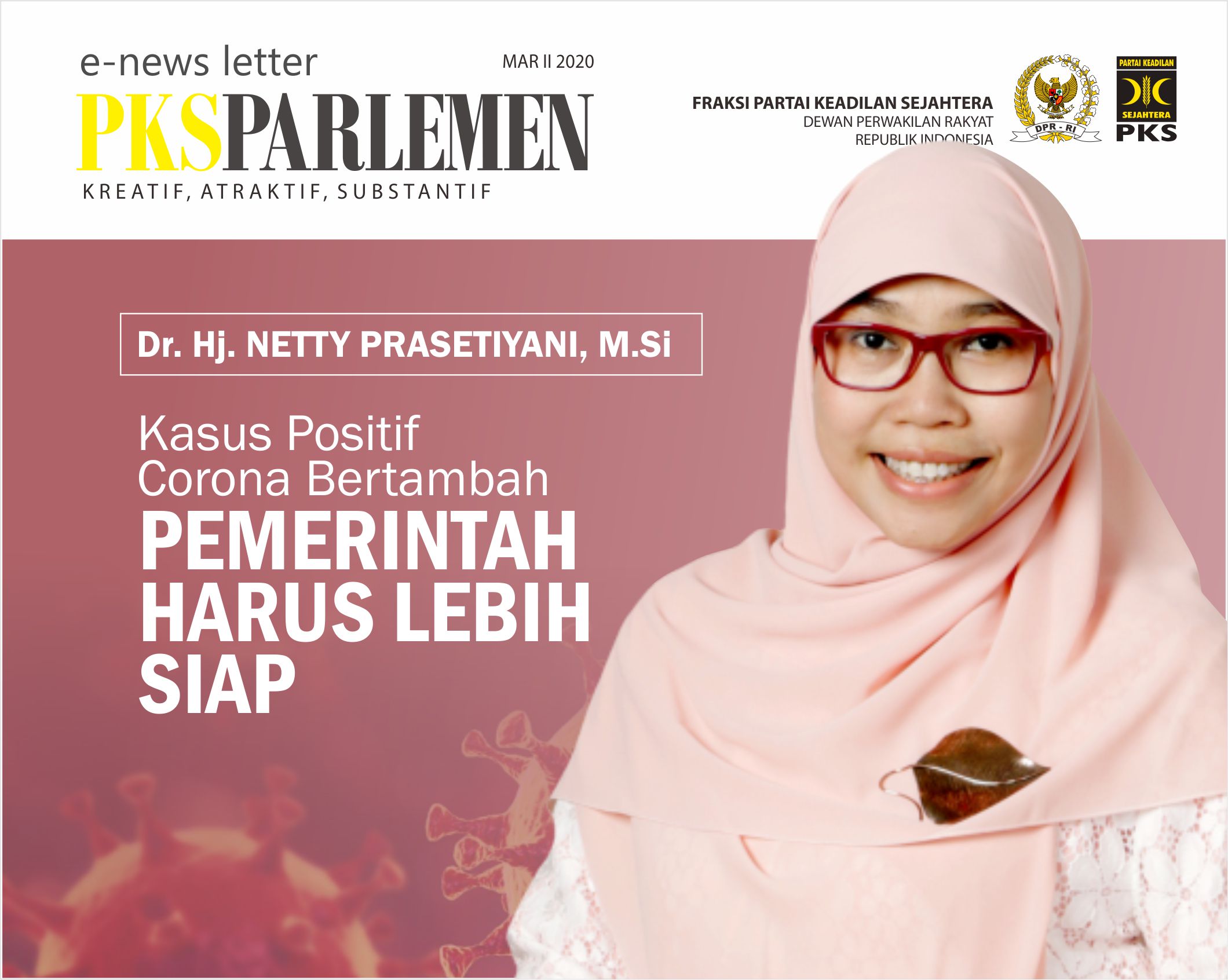 E-Newsletter Edisi II Maret 2020 telah terbit. Di dalamnya terdapat positioning berita, isu strategis dan kebijakan PKS di Parlemen.