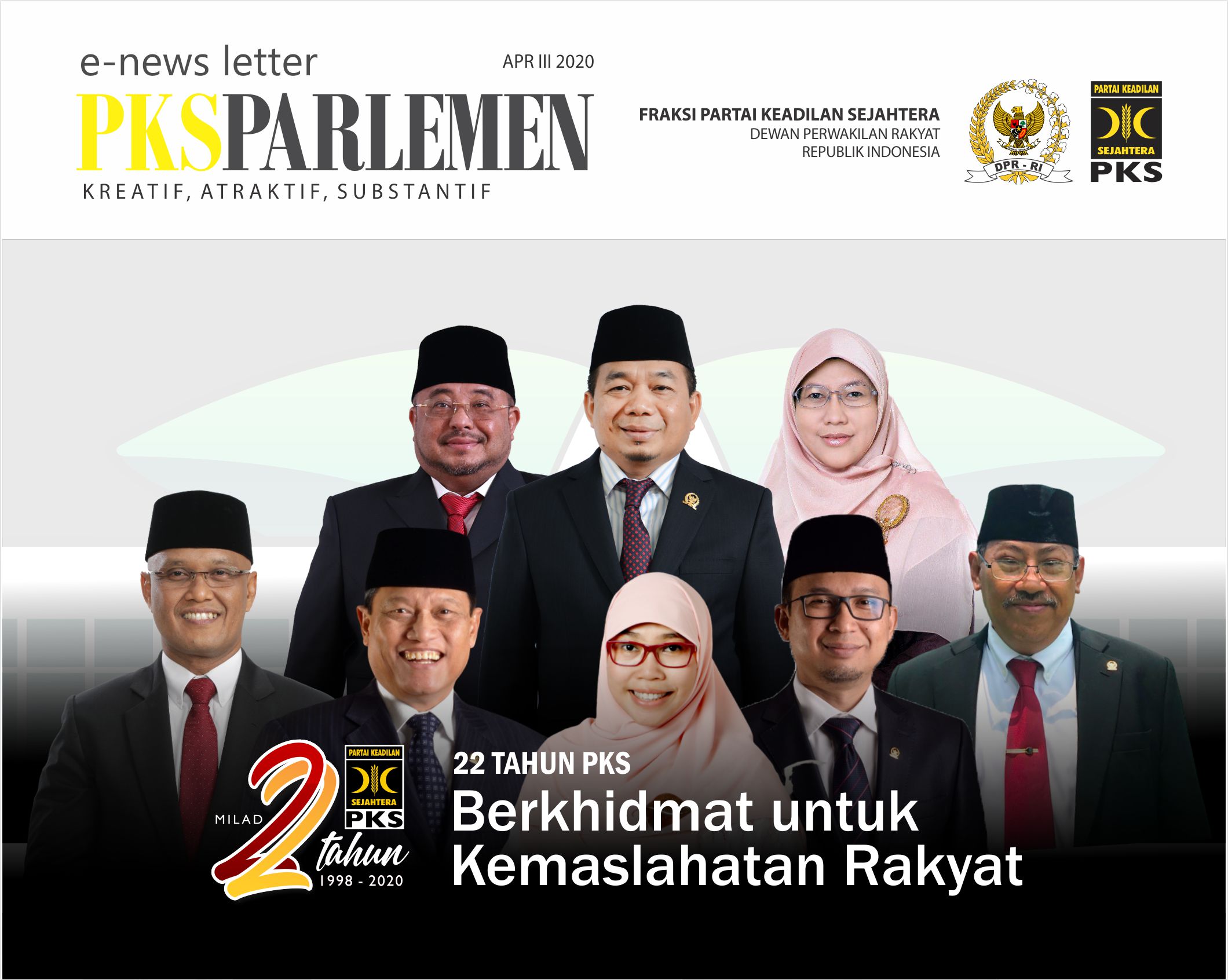 Bismillahirrahmanirrahim. Alhamdulillah e-newsletter April pekan ke III telah hadir. Pastikan ada mengetahui sejumlah pandangan, kebijakan dan positioning isu PKS di Parlemen.