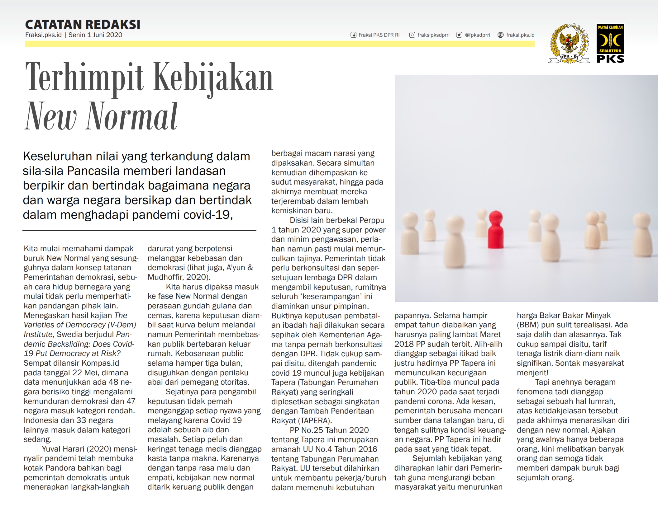 Alhamdulillah E-newsletter Fraksi PKS DPR RI edisi Juni 2020 telah terbit, sejumlah kebijakan dan isu menjadi perhatian yang terus diperjuangkan oleh PKS untuk kesejahteraan Rakyat.
