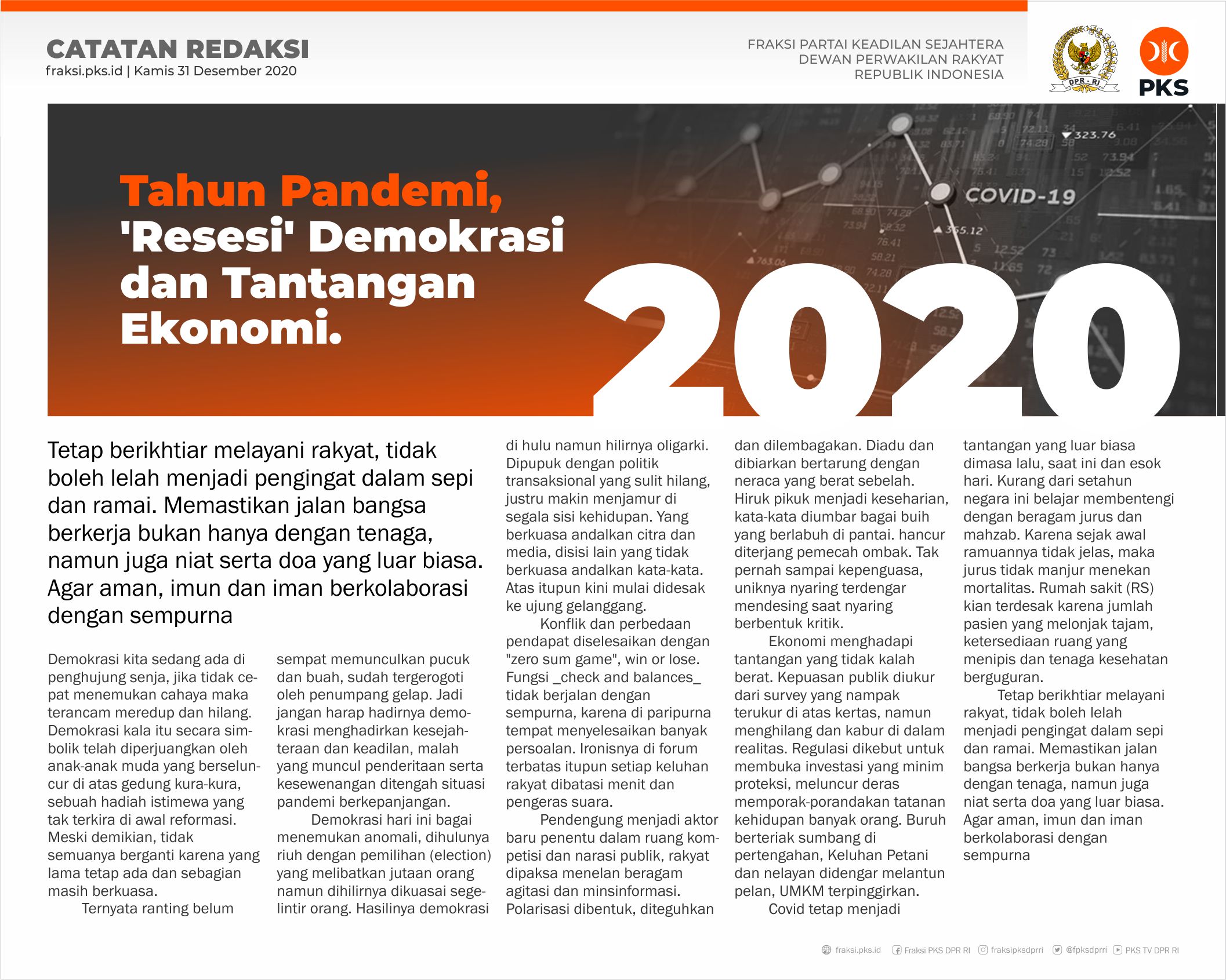 Di Penghujung tahun 2020 izinkan kami menghantarkan e-newsletter terakhir di bulan Desember. Semoga dapat memperkaya informasi dan memberikan positioning isu PKS di Parlemen.