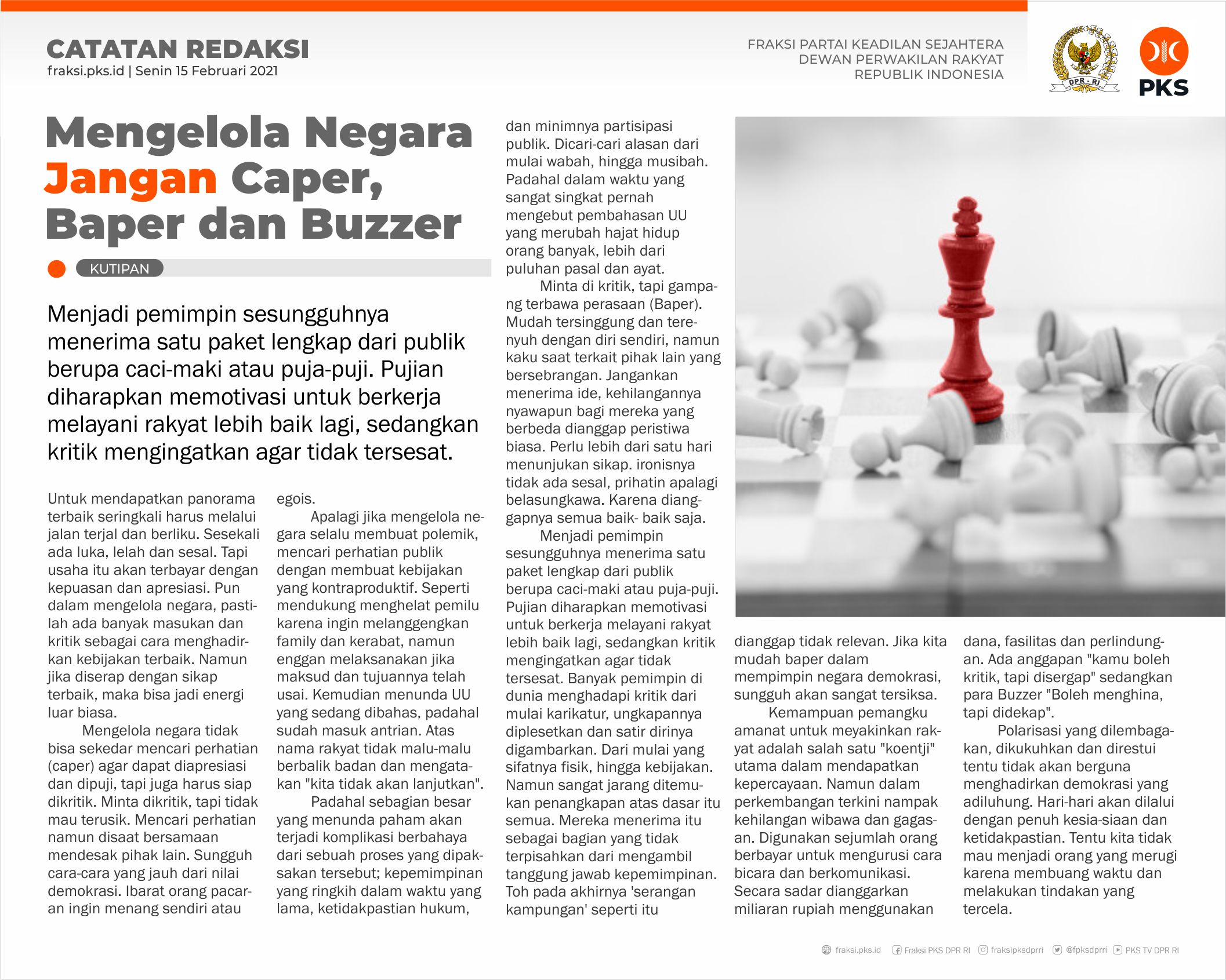 Izinkan kami menghantarkan e-newsletter PKS Parlemen Edisi II Februari 2021 No 6 kepada rekan dan sahabat FPKS DPR RI. Temukan positioning, kebijakan dan isu PKS di Parlemen.