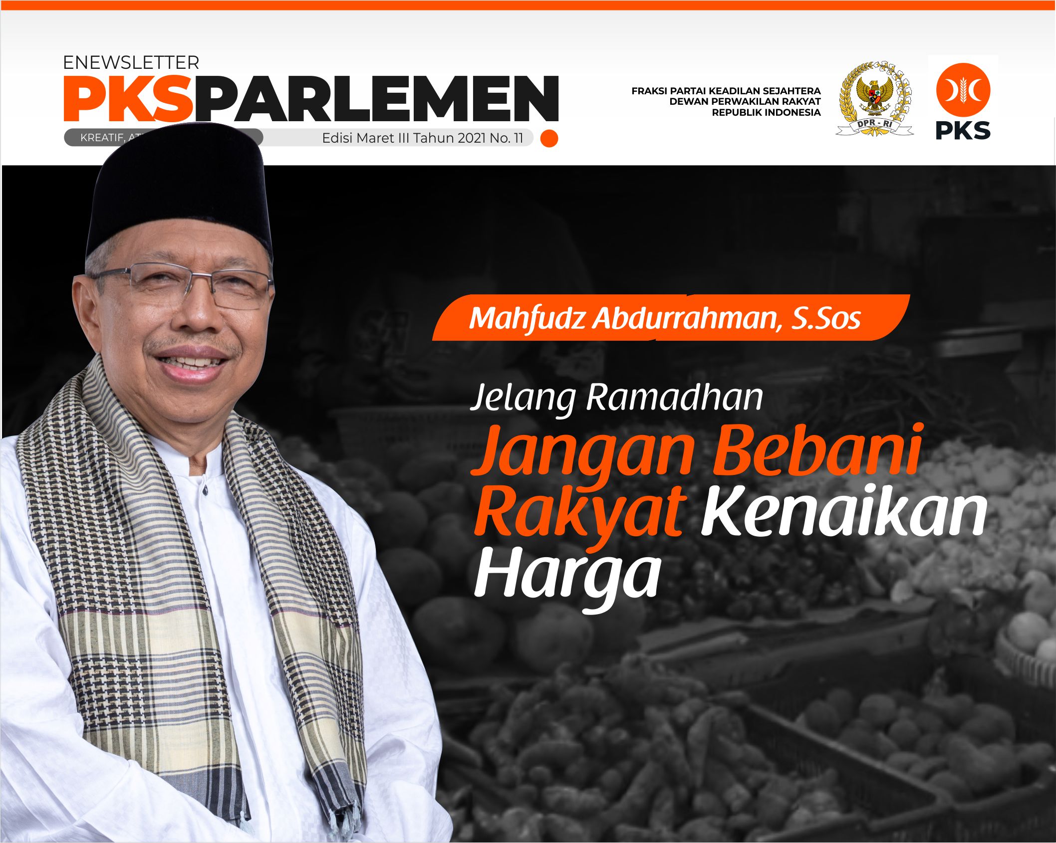 Izinkan kami menghantarkan e-newsletter PKS Parlemen Edisi Maret III Tahun 2021 No. 11. Semoga dapat menghangatkan suasana dan membantu anda menemukan positioning isu serta kebijakan PKS di Parlemen.
