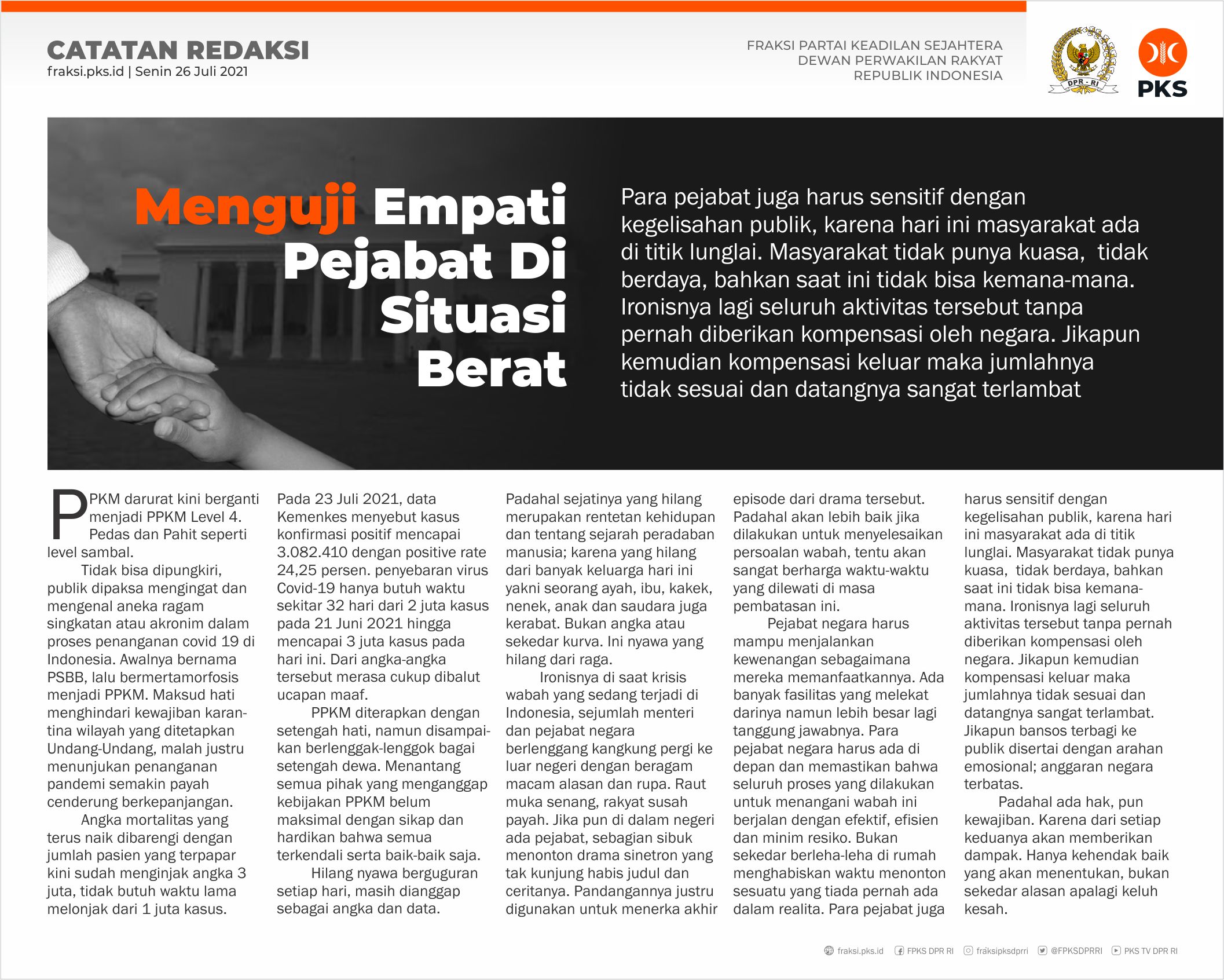 Izinkan kami menyampaikan perjuangan PKS di Parlemen dalam e-newsletter PKS edisi II Juli 2021 No 18. Temukan sikap, positioning dan kebijakan PKS terkini.