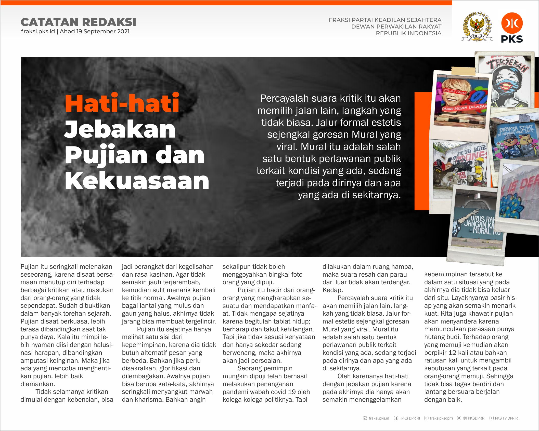 Perkenankan kami menghantarakan kabar terkini mengenai perjuangan dan positioning PKS di Parlemen melalui e-newsletter edisi 1 September 2021 no 20.