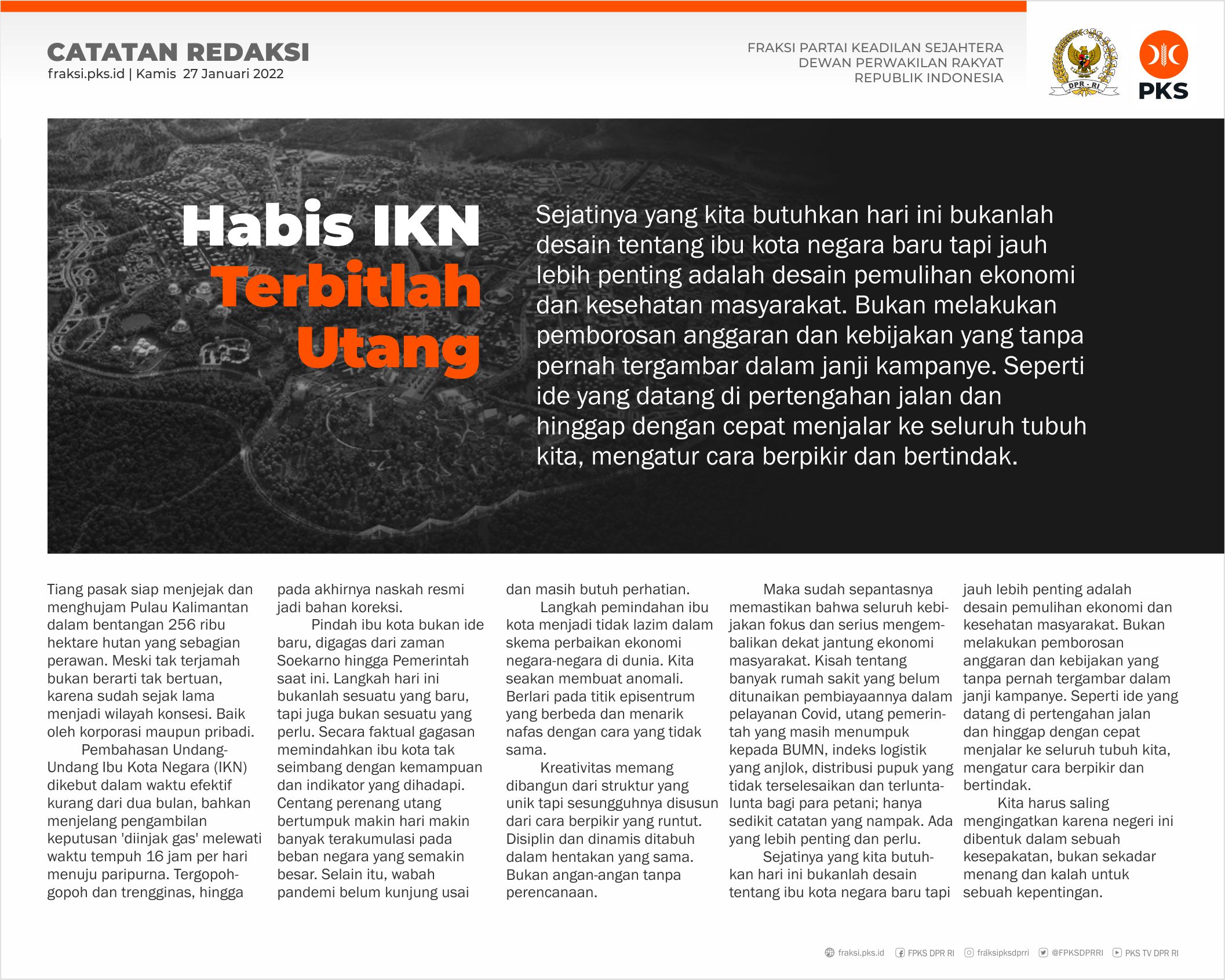 Izinkan kami menghantarkan kabar terbaru dari senyan terkait perjuangan PKS di Parlemen. Temukan positioning, isu dan kebijakan dalam e-newsletter FPKS DPR RI edisi Januari 2 No 27 Tahun 2022. 📌