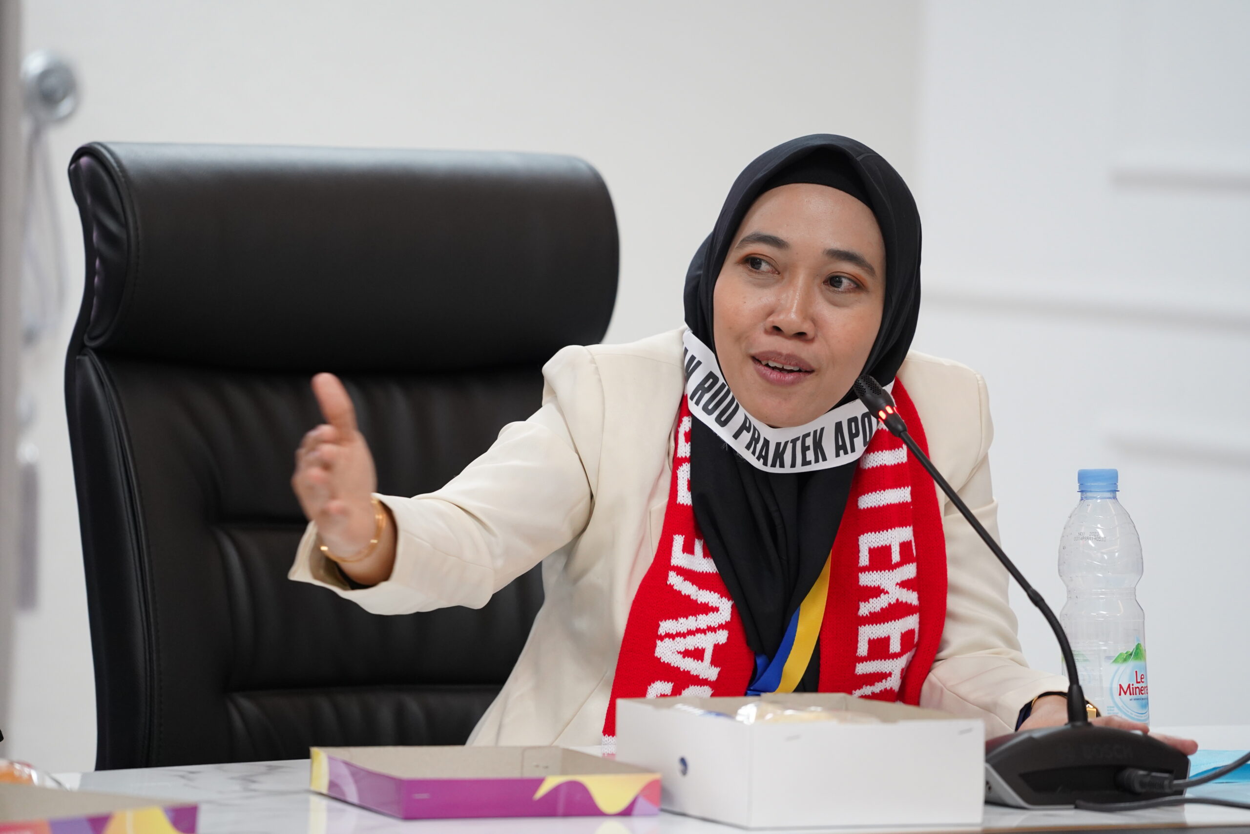 Jakarta (08/06) — Anggota DPR RI dari Fraksi PKS, Netty Prasetiyani dan Chairul Anwar, menerima audiensi dan aspirasi dari kesatuan aksi apoteker yang menuntut pengesahan RUU terkait Profesi Apoteker.