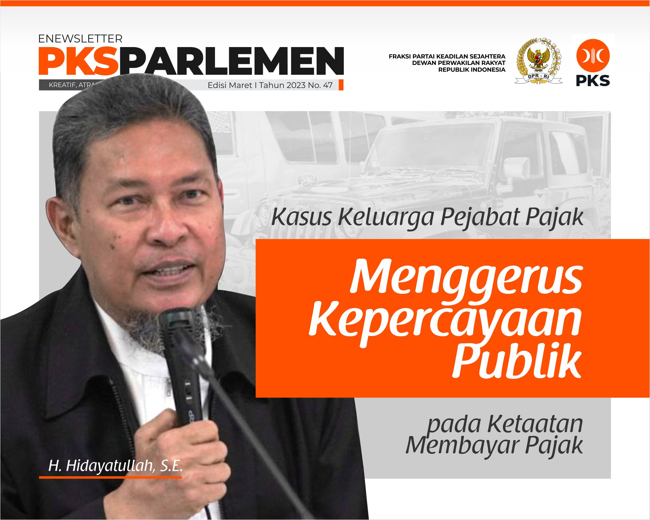 Izinkan kami menyampaikan informasi terkait aktivitas PKS di senayan dalam e-newsletter PKS Parlemen edisi Maret 1 Tahun 2023 no 47.
