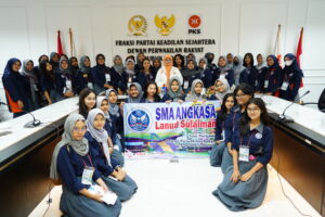 Rabu, 11 Oktober 2023, Anggota Komisi VII FPKS DPR RI Diah Nurwitasari menerima kunjungan dari SMA Lanud Sulaiman , Kabupaten Bandung, sebanyak 250 siswa dan guru. Berawal dari berfoto di gedung kura-kura dilanjut masuk ke ruang paripurna I dan diskusi bertempat di ruang komisi IV dan Ruang Meeting Fraksi PKS DPR RI lantai 3, Nusantara I, Senayan, Jakarta. (11/10/23)