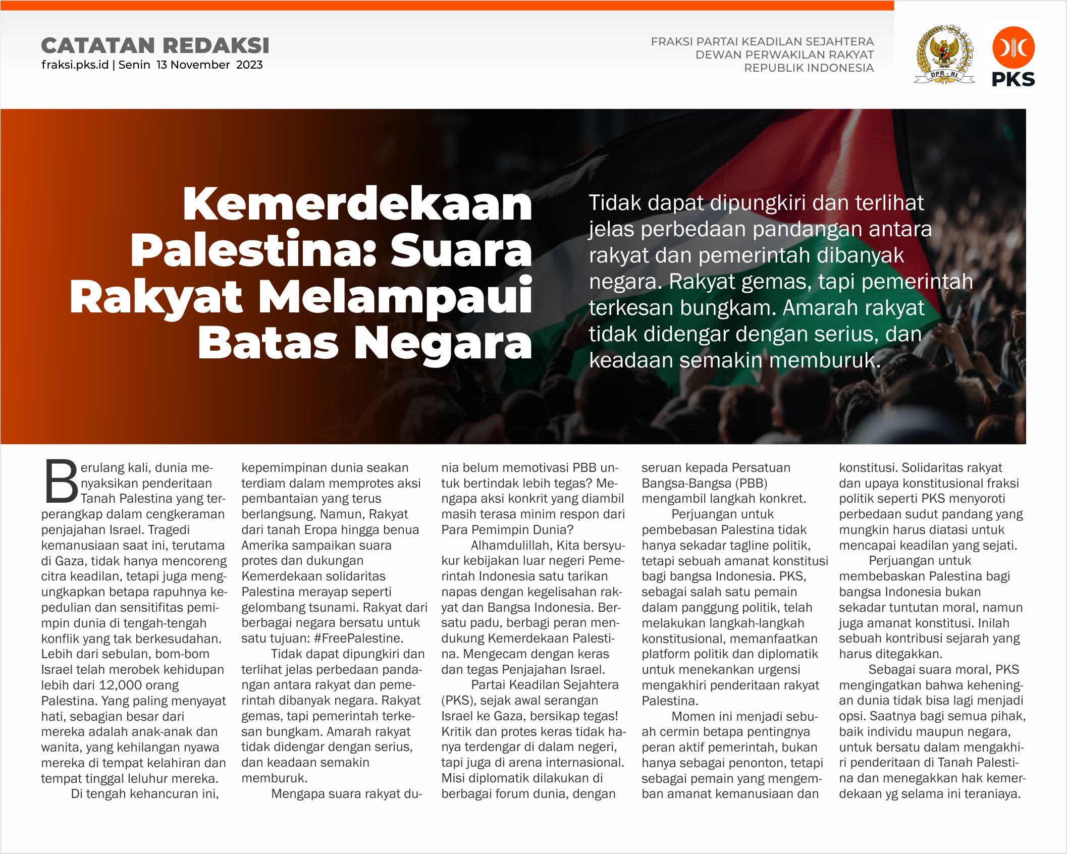 Berikut kami sampaikan e-newsletter FPKS DPR RI edisi I bulan November 2023 Temukan berbagai informasi, positioning dan kebijaka terkini dari PKS parlemen.
