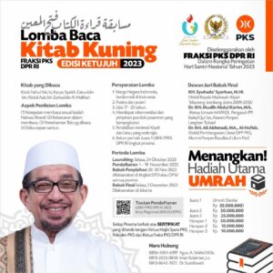Yuk, ikut Lomba Baca Kitab Kuning F-PKS DPR RI tahun 2023. Berhadiah Umrah dan uang tunai puluhan juta rupiah lho. Cek syarat, ketentuan, dan mekanisme lomba pada flyer di atas yaa.