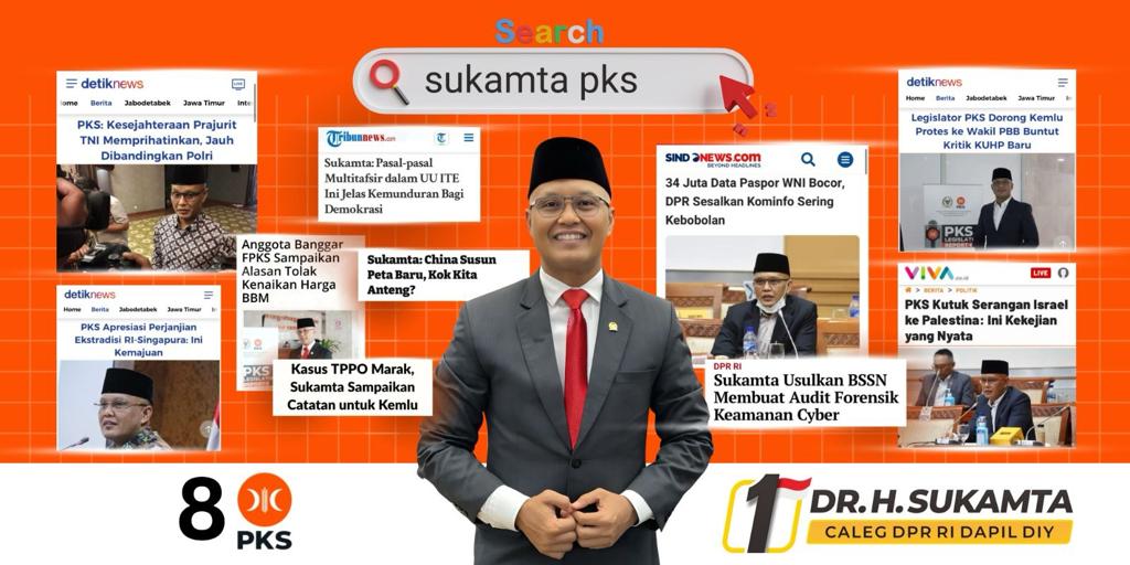 Sukamta, Anggota DPR RI dari daerah pemilihan DIY, menciptakan baliho yang mengajak publik untuk menelusuri prestasinya melalui mesin pencari Google dengan kata kunci “Sukamta PKS”. Pilihan kata kunci ini tidaklah sembarangan, melainkan sebagai jembatan untuk menyoroti kiprah Sukamta di DPR. Baliho tersebut juga menampilkan tangkapan layar dari berbagai media nasional, memperlihatkan kontribusinya di bidang legislasi, pertahanan keamanan, dan dukungannya terhadap Palestina di berbagai forum diplomasi Internasional.