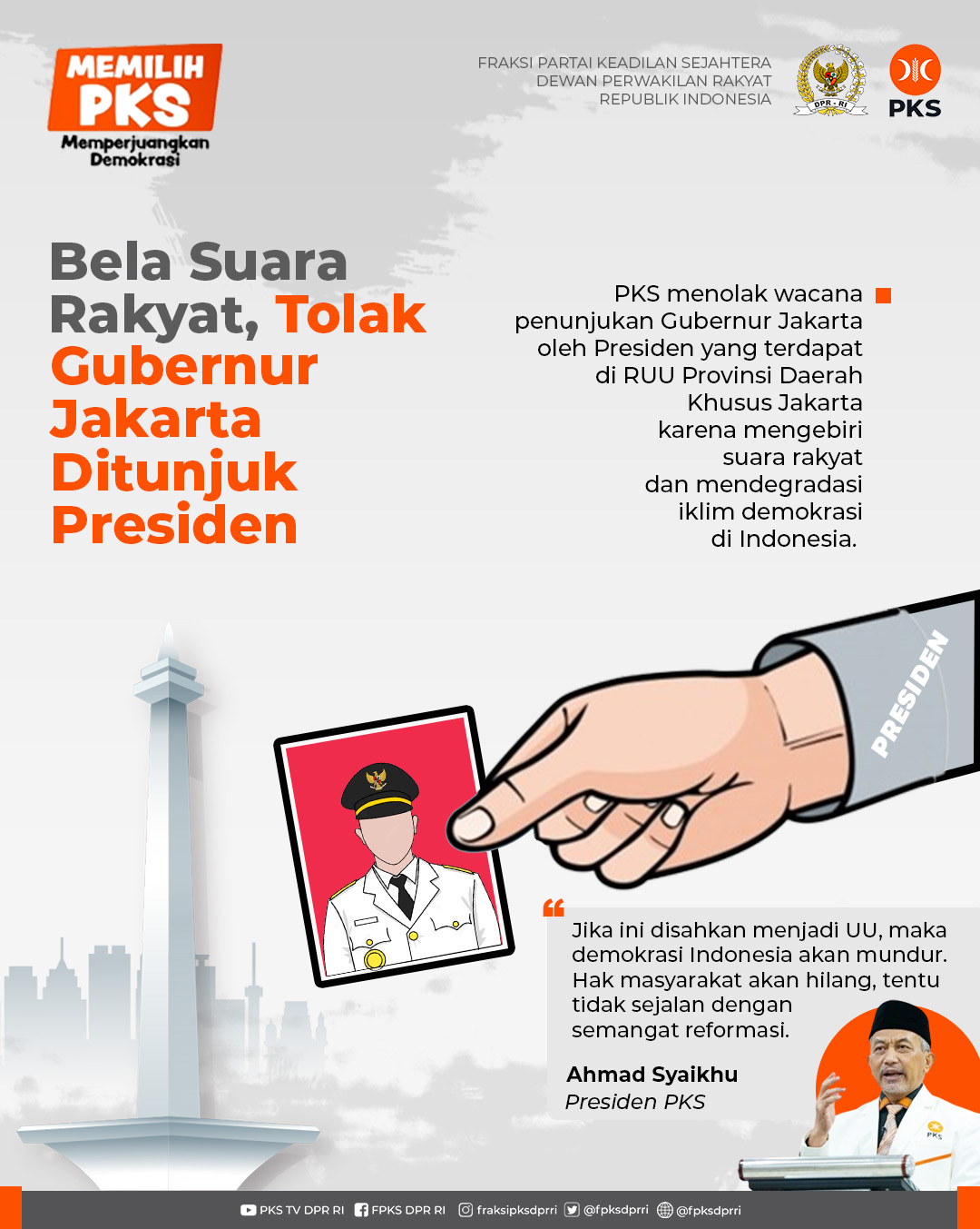 PKS setia untuk mempertahankan hak-hak dan suara rakyat. Maka dari itu, PKS menolak wacana penunjukan Gubernur Jakarta oleh Presiden yang terdapat di RUU Provinsi Daerah Khusus Jakarta karena mengebiri suara rakyat dan mendegradasi iklim demokrasi di Indonesia.