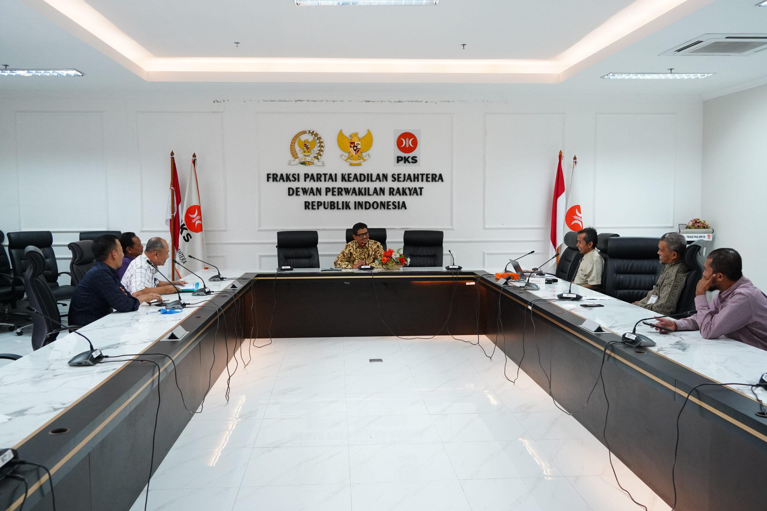 Anggota Komisi VI DPR RI Amin Ak dari Fraksi PKS Menerima Aspirasi dari DPRS FPKS kota Cilegon dan Dirut PT Linggar Bhakti Teknika, Sharing terkait penyelesaian masalah dengan PT. ASDP Indonesia Ferry. Di ruang meeting FPKS Lant 3, Nusantara I, Senayan Jakarta.