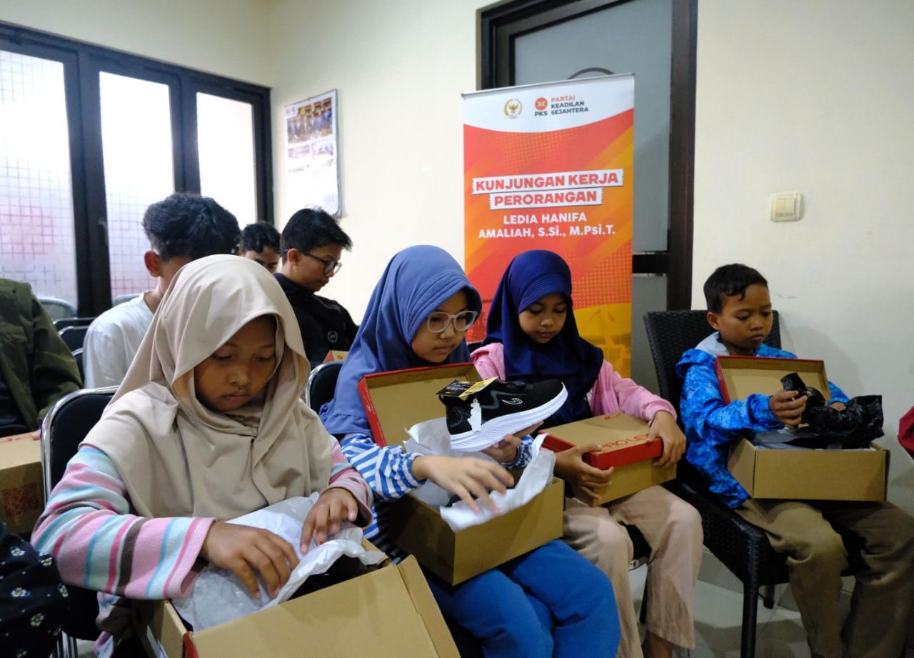 Bandung (03/08) — Mendukung keberlangsungan kegiatan pendidikan di dapilnya Kota Bandung dan Kota Cimahi, anggota DPR RI Komisi X Ledia Hanifa Amaliah membagikan ratusan sepatu bagi siswa sekolah setingkat SD hingga SMA/SMK.