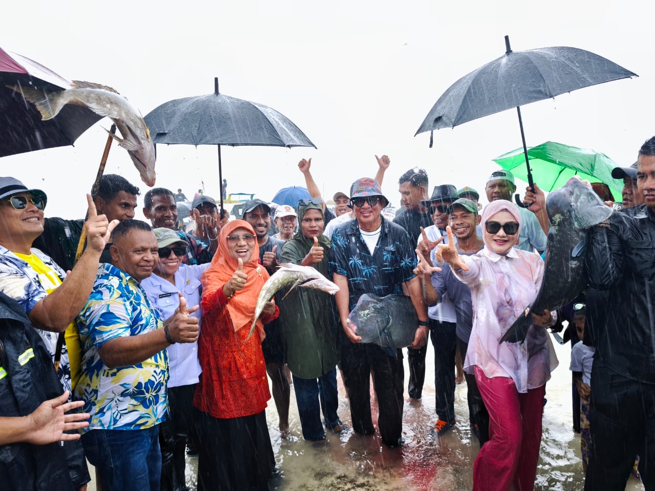 Dalam suasana yang penuh keceriaan, Ibu Saadiah Uluputty bersama Ibu Widya, Bupati, serta masyarakat ikut turun langsung ke pantai menggunakan alat tikam atau tombak tradisional untuk menikam ikan yang telah terkurung. Tradisi ini bukan hanya sekadar atraksi budaya, tetapi juga wujud kearifan lokal masyarakat pesisir dalam menjaga dan memanfaatkan sumber daya laut secara lestari.