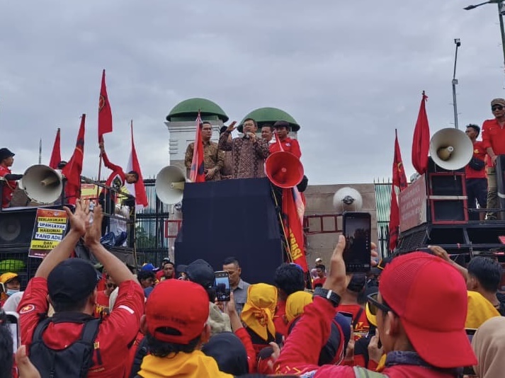 “Kami dari Badan Aspirasi Masyarakat, mewakili pimpinan DPR, mewakili rakyat Indonesia, pada prinsipnya setuju untuk segera ada perubahan Undang-Undang Ketenagakerjaan,” ujar Ahmad dari atas mobil komando.