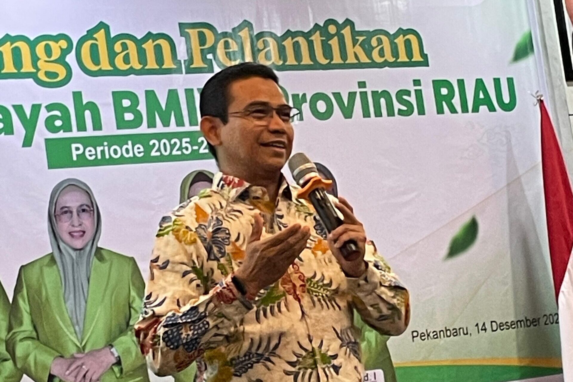 Pekanbaru (14/12) — Anggota Komisi VII DPR RI Daerah Pemilihan Riau 1, Hendry Munief MBA menghadiri pelantikan dan pengukuhan Pengurus Badan Musyawarah Islam Wanita Indonesia (BMIWI) Provinsi Riau di Hotel Evo, Kota Pekanbaru pada hari Ahad (14/12/2025).