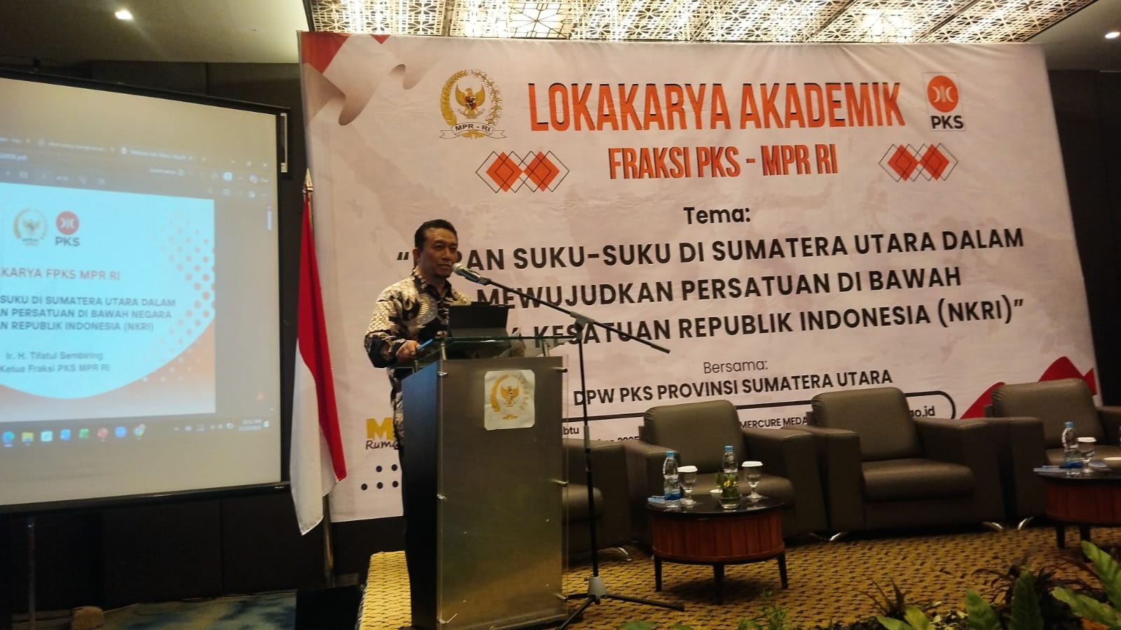 Medan (23/12) — Fraksi PKS MPR RI menyelenggarakan Lokakarya bertema “Peran Suku-suku di Sumatera Utara dalam Mewujudkan Persatuan di Bawah Negara Kesatuan Republik Indonesia (NKRI)” di Hotel Grand Mercure Medan, Sabtu (20/12/2025). Kegiatan ini diikuti sekitar 80 peserta yang berasal dari perguruan tinggi, mahasiswa sejarah, serta unsur DPRD.