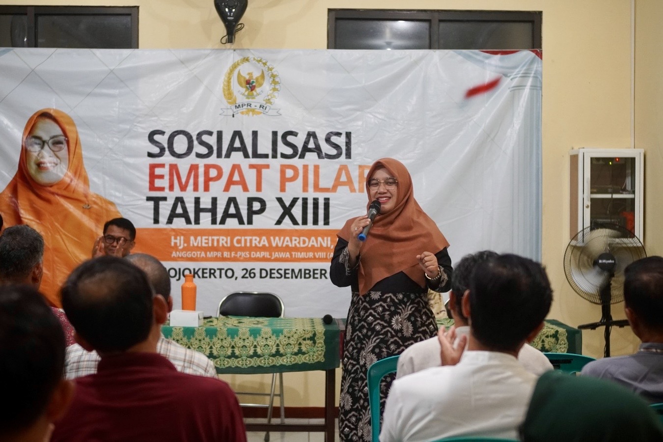 Mojokerto (18/01) — Suasana hangat menyelimuti Balai RW di Kelurahan Surodinawan, Kecamatan Prajuritkulon, Kota Mojokerto, Jumat (26/12/2025). Anggota MPR RI Dapil Jawa Timur VIII, Meitri Citra Wardani, hadir di tengah-tengah warga untuk menggelar Sosialisasi Empat Pilar MPR RI.