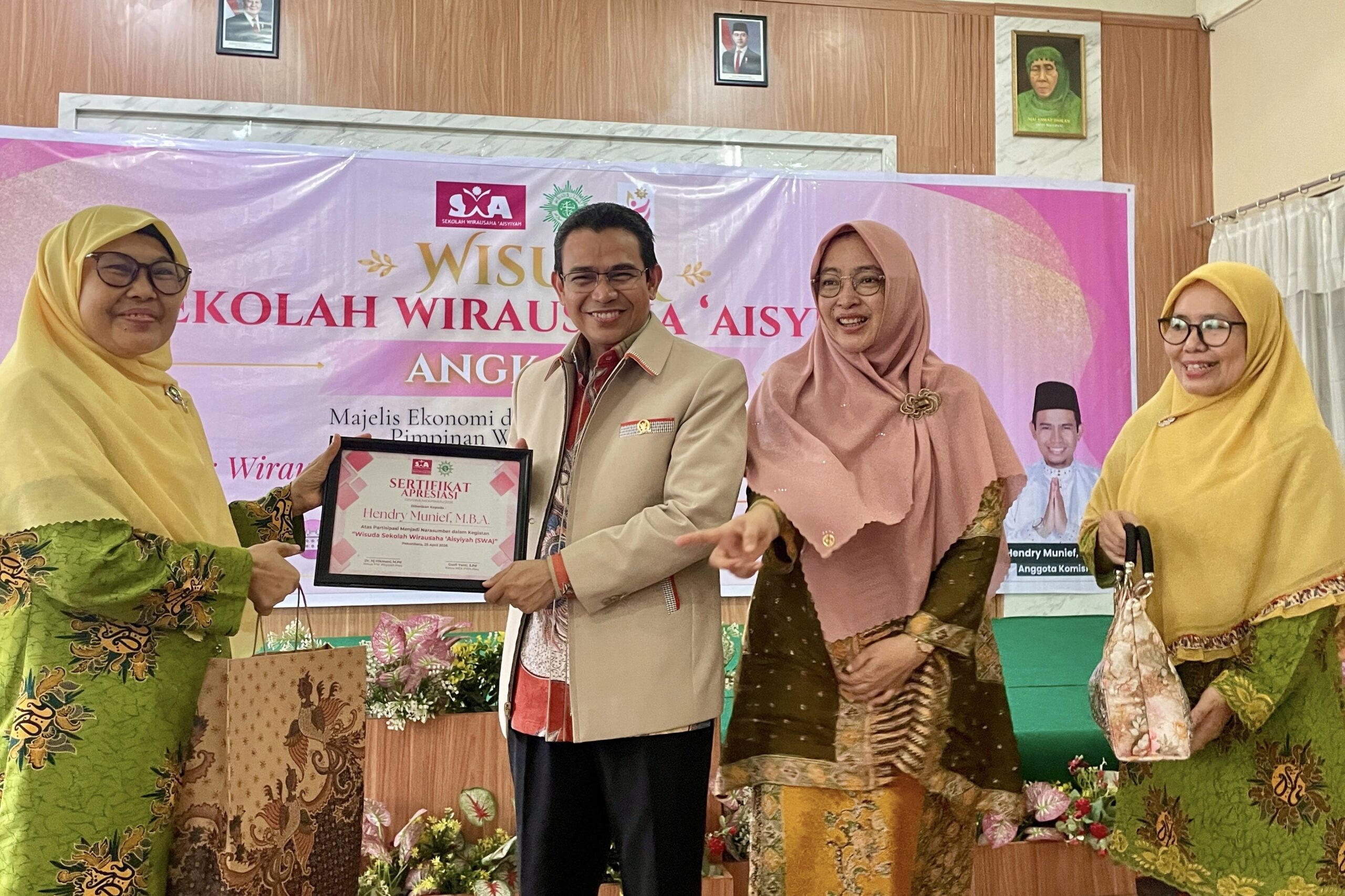 Sementara itu, Ketua PW ‘Aisyiyah Riau, Hikmani, dalam sambutannya memberikan apresiasi atas terselenggaranya program Sekolah Wirausaha ‘Aisyiyah. Ia menekankan pentingnya peran perempuan dalam menggerakkan ekonomi keluarga dan masyarakat.